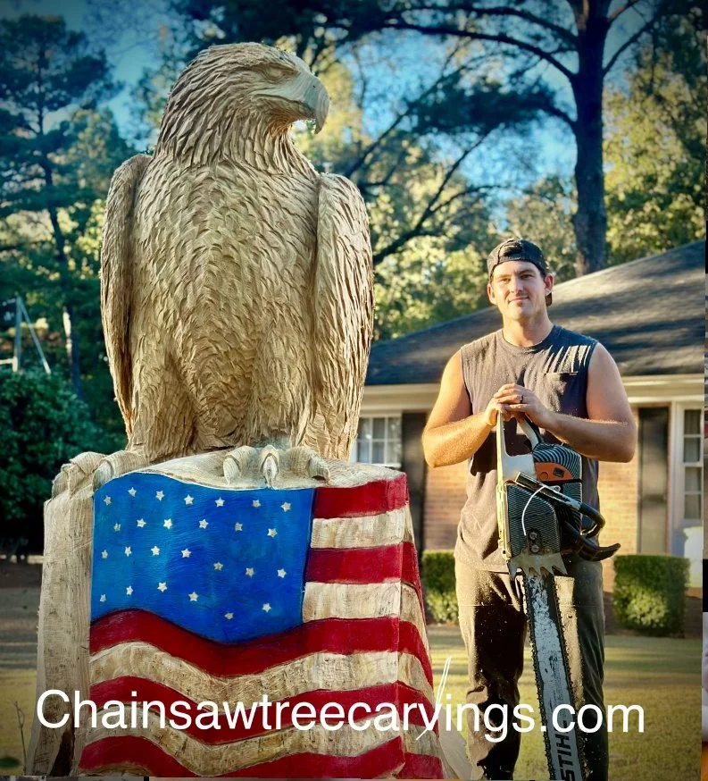 A quick look at some of my recently finished tree Carvings Owl carving Nashville, TN Lion of Judah Atlanta, GA Wolf bust Maryville, TN Patriotic eagle Tuscaloosa, AL Stay tuned for more carvings!